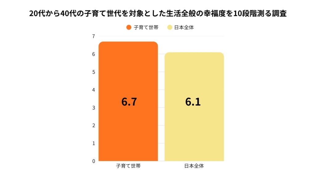→子育て世代の幸福度は日本平均(6.1点)を上回る6.7点