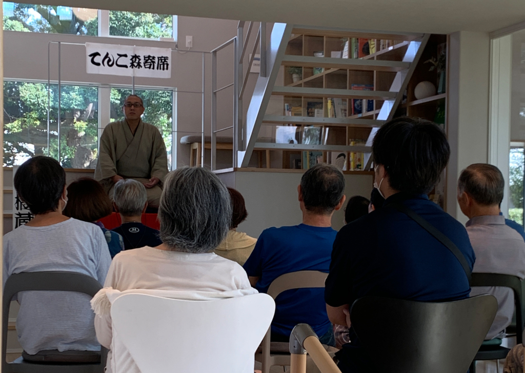 (左下)認知症カフェ(てんこ森カフェ)、(中下)てんこ森カフェ落語会、(右下)子ども食堂